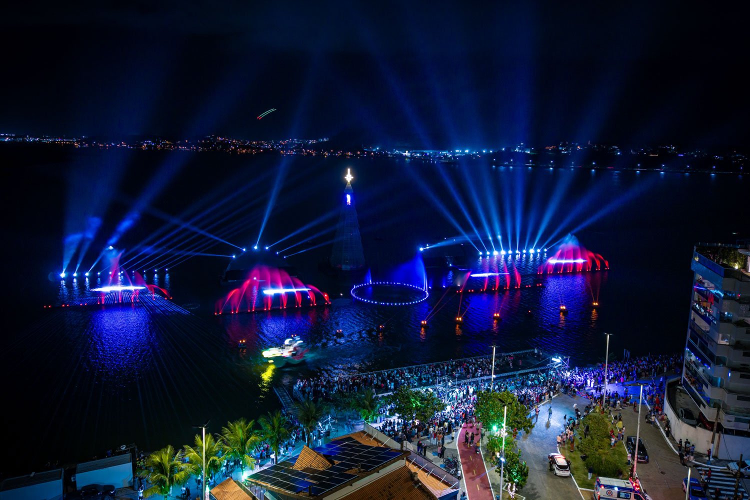 O secretário de Turismo, Léo Anderson, informou que o espetáculo alcança 200 metros de comprimento, preenchendo a margem da lagoa com efeitos luminosos e movimentos coreografados das águas.