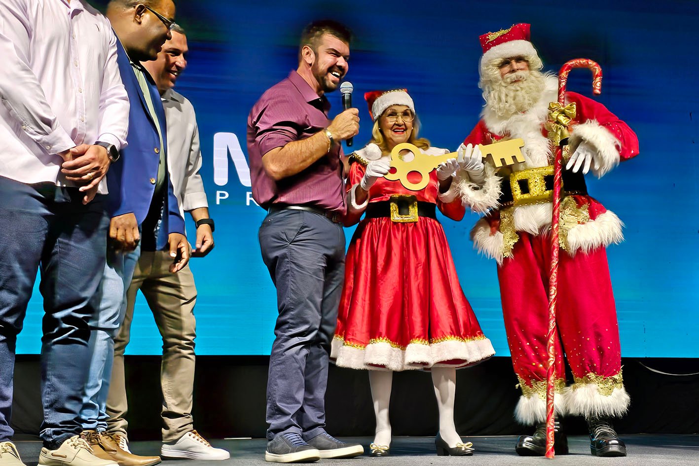 Durante a cerimônia, o prefeito Welberth Rezende entregou a chave da cidade ao Papai Noel, que chegou acompanhado de Cirlene Rezende, mãe do prefeito. Em discurso, Welberth destacou o impacto econômico e turístico das celebrações de fim de ano no município.